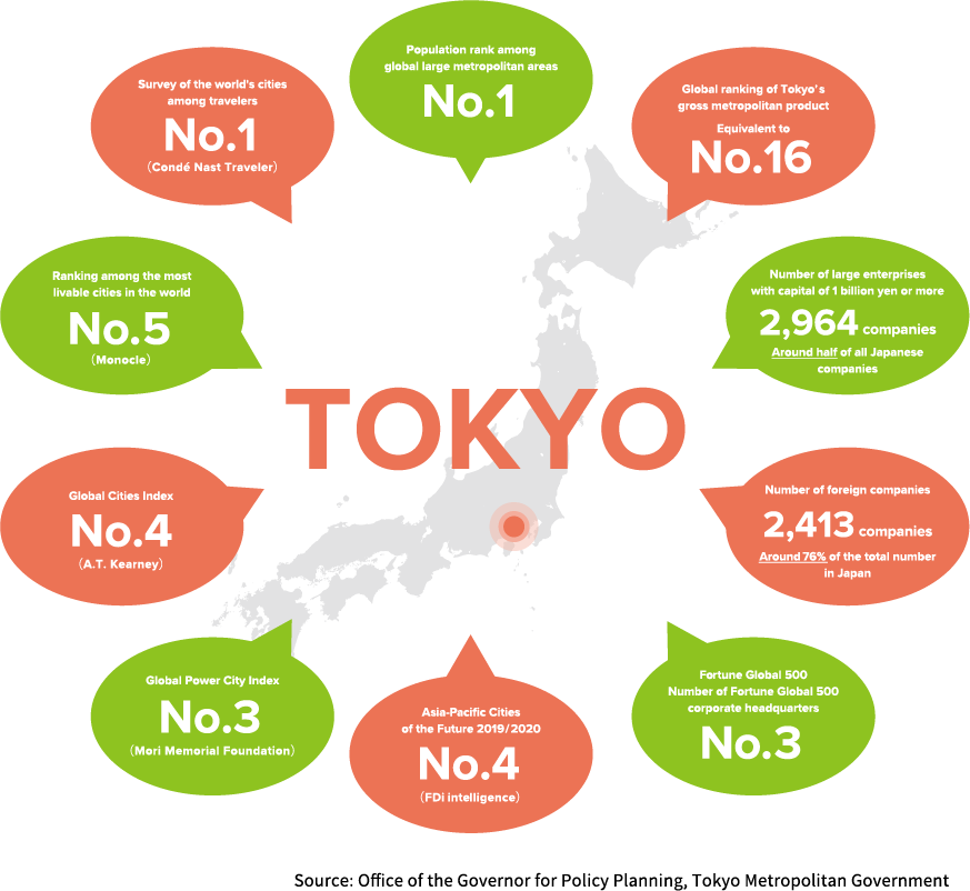 The Tokyo area is a huge economic zone with a population of approximately 37.4 million, far exceeding the other global major metropolitan areas such as New York and London.