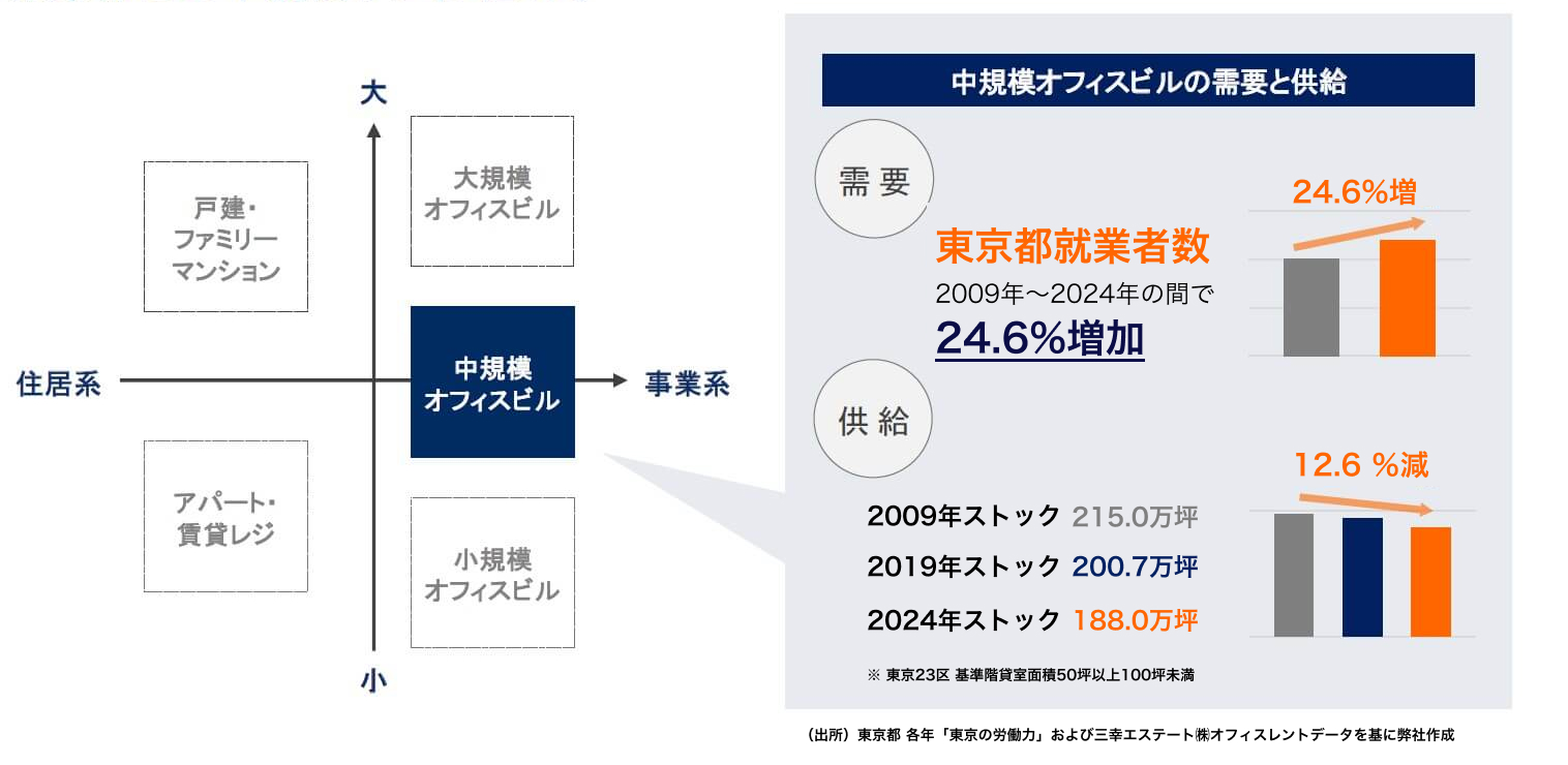 供給過多、人口減少の影響を受けにくく、需要と供給のバランスにメリットがある「東京都心の中規模オフィス」