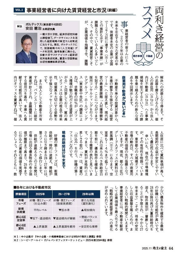 | 2025/10/23 | 地主と家主11月号で当社 安田憲治の寄稿がスタートしました(連載 全6回) |