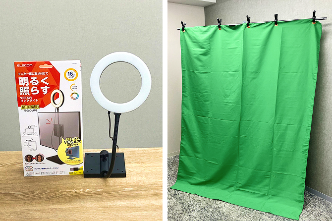 グリーンバックやリングライトなど、動画配信に使える備品もご用意してますので、防音されたお部屋で、快適な撮影・配信が可能です。