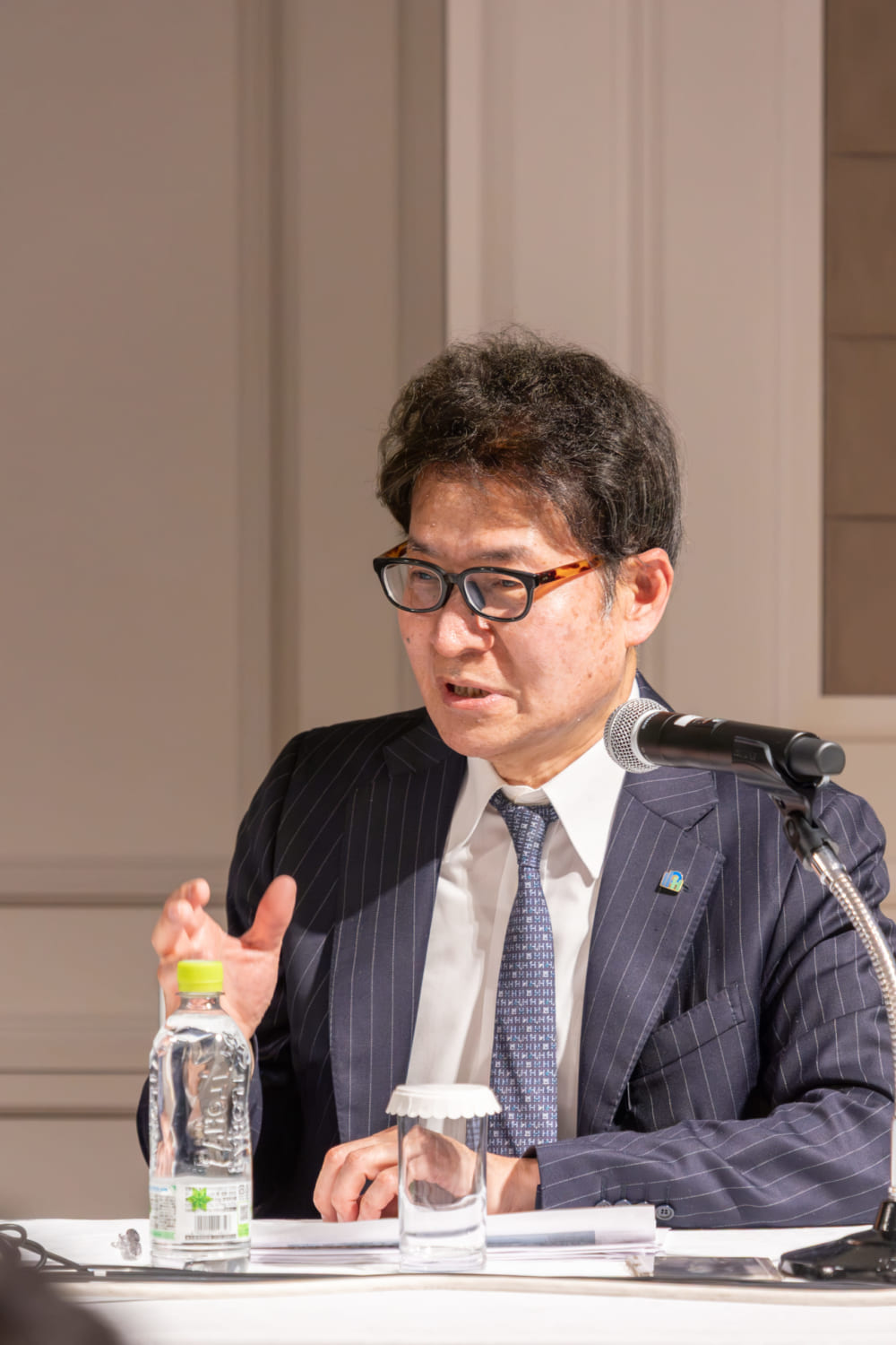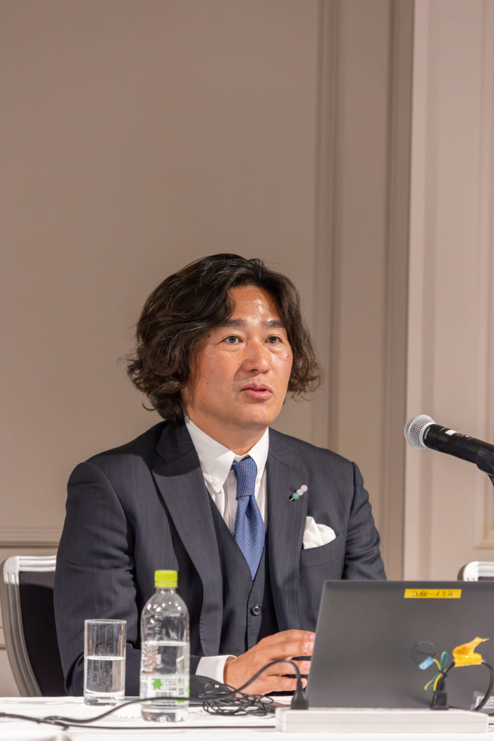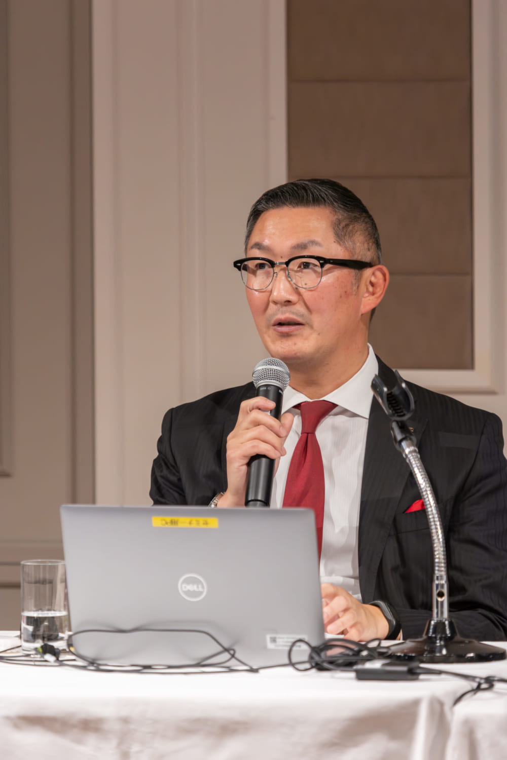 50名に限定された客席から参加者の経営者らが見つめる中、本セミナーは弊社代表取締役社長兼CEOの宮沢文彦による「主催者あいさつ」から始まりました。